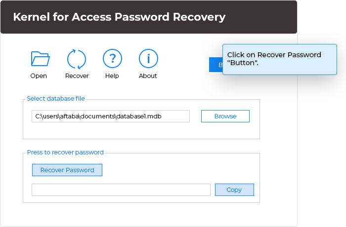Kernel for Access Password recovery allows users to recover Access Database MDB files with ease. You can complete this task in 3 straightforward steps.