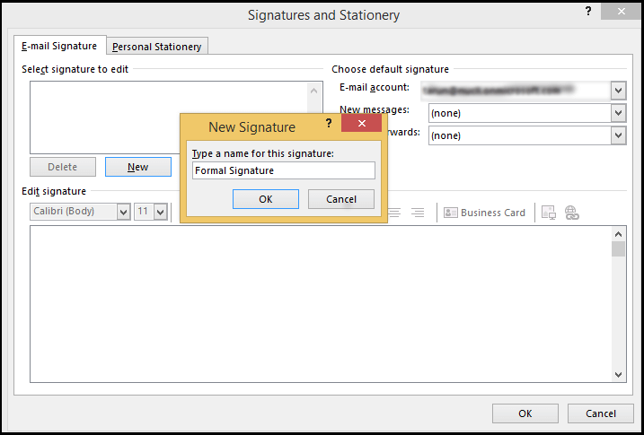 Step 4. Go to the Edit Signature section, make the signature that you want to use for your emails. After making the signature, go to Choose the Default Signature, and choose the newly created signature in the New Message dropdown. Click OK.