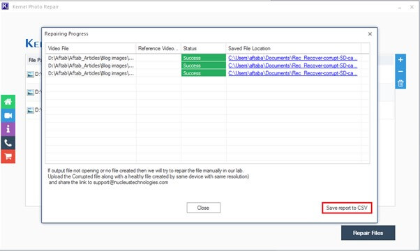 - The process will begin, and you can even check the progress. Once completed, click on Close to exit.