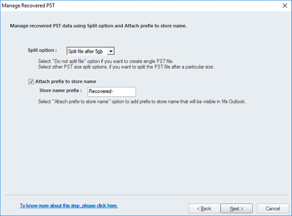 - Save the converted PST file into multiple PST file if you realize that it is very large. Otherwise, simply select Do not split file option to save the entire data to a single file.