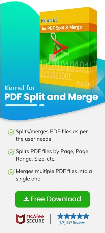 All the limitations of online PDF splitting tools and manual methods can be left behind when using a more professional tool. One such tool is the Kernel for PDF Split and Merge tool, which can effortlessly split large PDF into smaller files. The tool is capable of splitting and merging single or multiple PDF files within a few mouse clicks with its simple and user-friendly interface. Even when files become corrupted, you can restore entire corrupt PDF file with much ease. Follow these easy steps to split large PDF files: