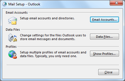Step 1. Go to Control Panel, click on Mail and choose the Data Files option.