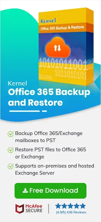 The only alternative to manual Office 365 data backup is using an automated tool like Kernel Office 365 Backup & Restore, which is integrated with advanced algorithms. It allows you to backup your Office 365 data to a PST file to secure your critical data. Using this tool, you can backup & restore Office 365 mailboxes in bulk while maintaining the data hierarchy. Besides, it gives you the freedom to backup selective data items based on your requirements.