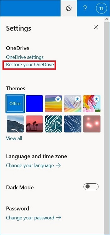 - Log in to the OneDrive website and click the Settings option with the Gear icon. Choose, Restore your OneDrive.