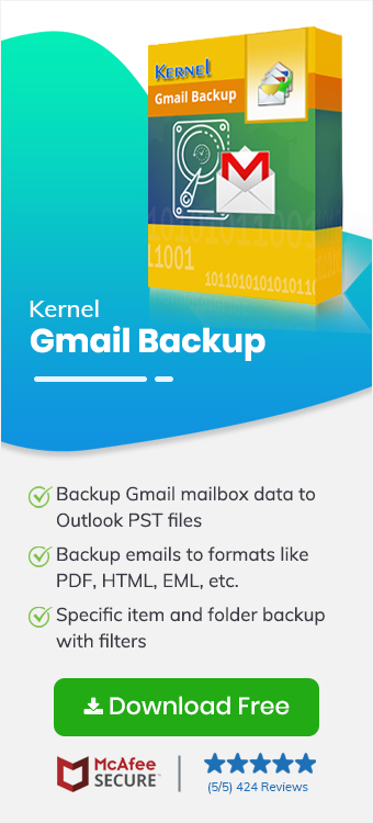The above two methods are reliable for backup only if there are a few emails with attachments. Otherwise, these methods are time-consuming and have many limitations. Using a third-party Gmail backup tool can make the work much easier. Kernel Gmail Backup Tool is a fine utility that creates a backup of the entire email data from Gmail mailboxes at ease. It can save multiple emails with attachments without disturbing the data integrity in various file formats.