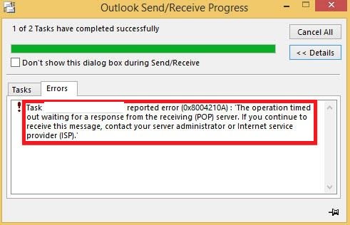 This error mainly occurs because of the wrong timeout settings of the POP server. To be more precise, Outlook uses a pre-defined time span to send/receive email messages, and when you try to send/receive many emails, Outlook throws a MS Outlook timeout error 0x8004210a. The primary method to resolve this error is to change the timeout settings or temporarily uninstall the antivirus program you are currently using on your system.