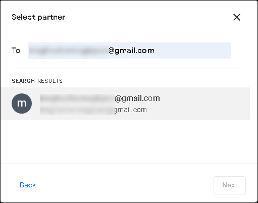 - Enter the email address of the Google account you want to transfer photos to. Click Next.