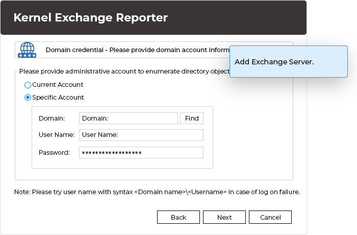 Kernel Exchange Reporter has a user-friendly interface which is appropriate for all kinds of users. In addition, it allows you to view Exchange reports in just 3 simple steps.