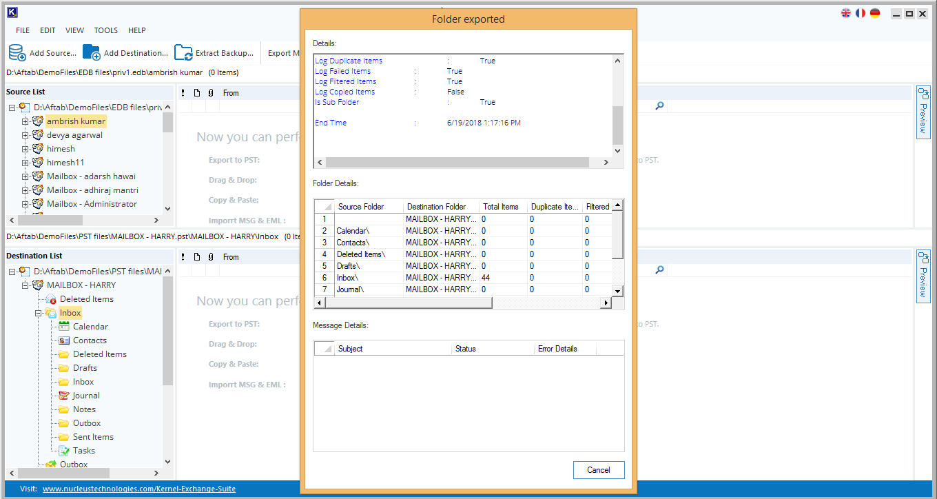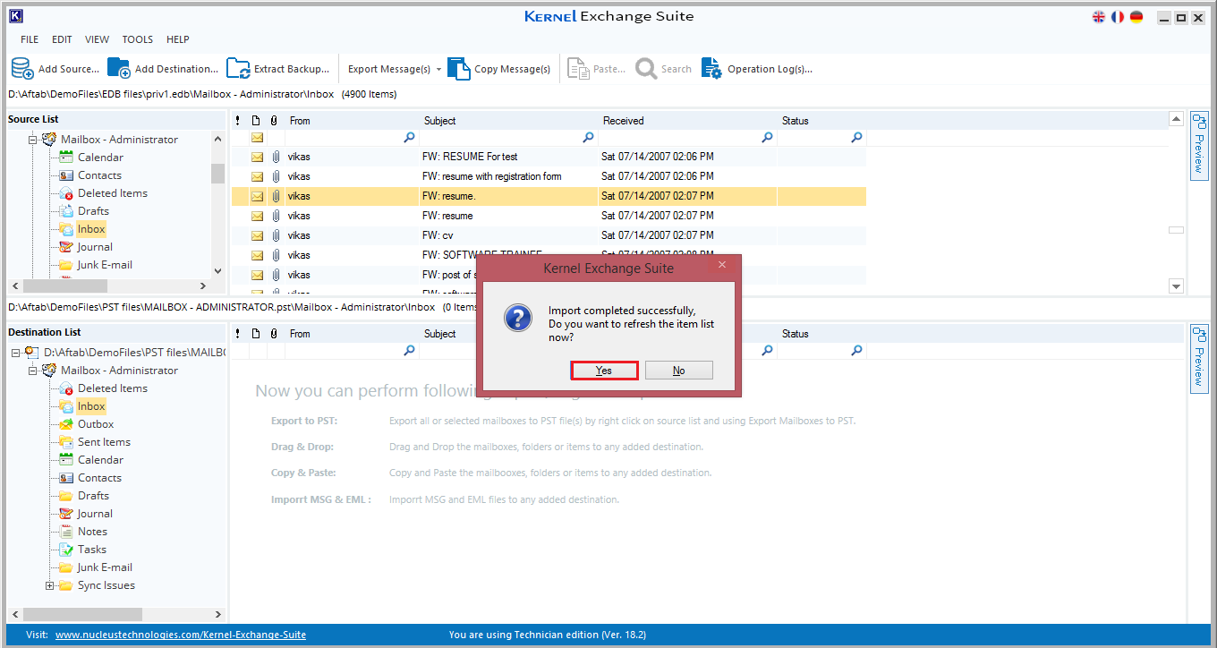 Step 4: Thus, the files are copied to the destination mailbox folder.