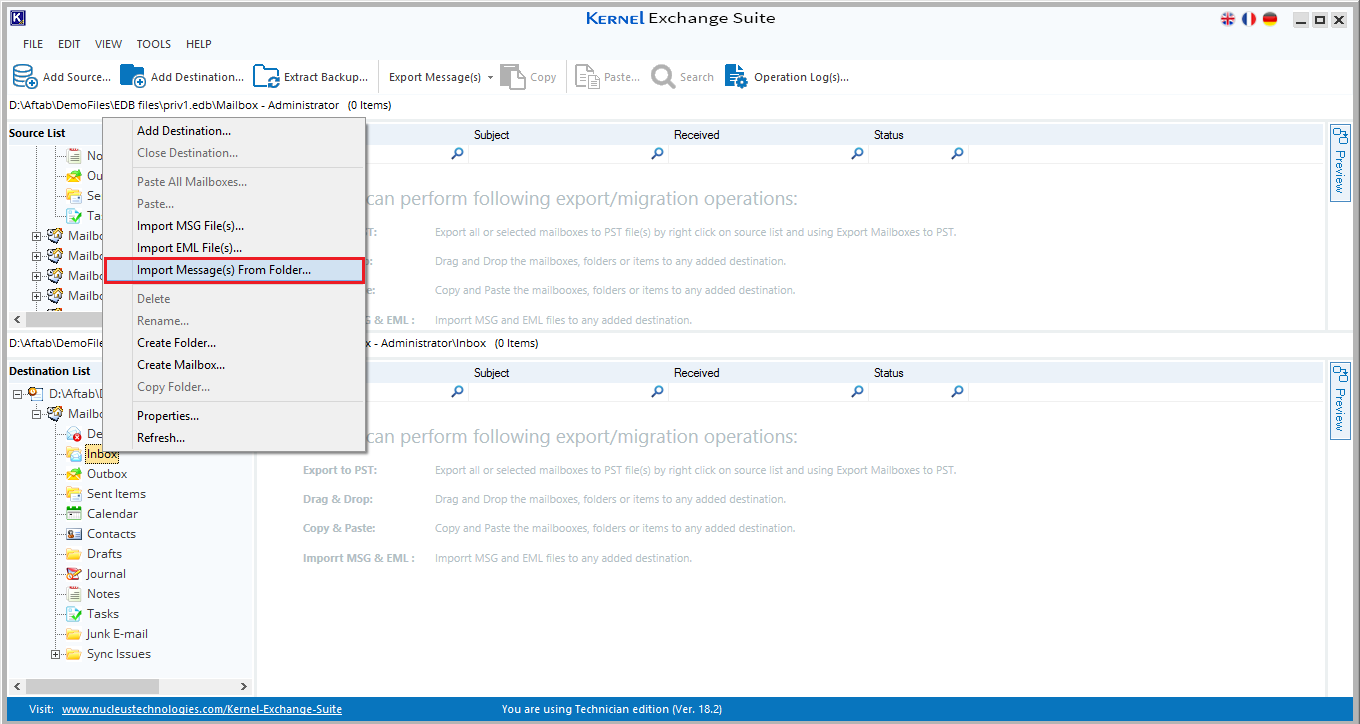 Drag & Drop is a simple method to migrate messages from a source mailbox folder to a destination mailbox folder.