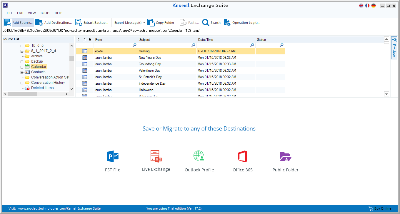 Kernel Exchange Suite helps you recover and export mailbox data (from a source) to various destinations. For this, you should add the required destination (after adding the source).