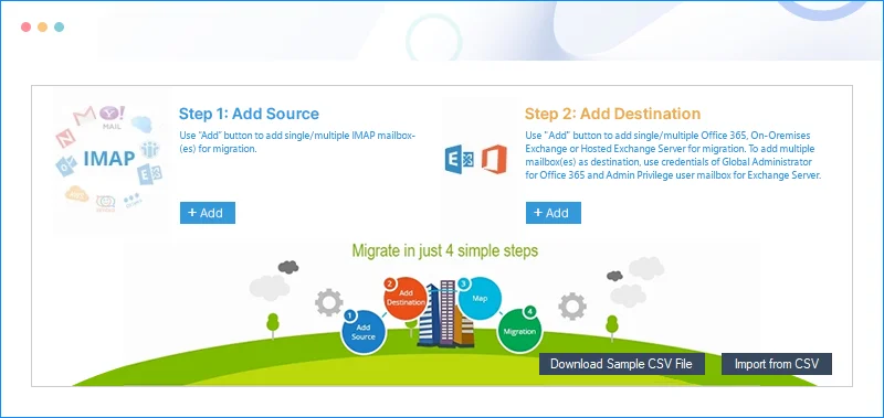 The IMAP emails to Office 365 Migration software offers bulk IMAP mailboxes migration using advanced CSV authentication. Simply add bulk users in source & destination to migrate unlimited IMAP mailboxes without data loss.