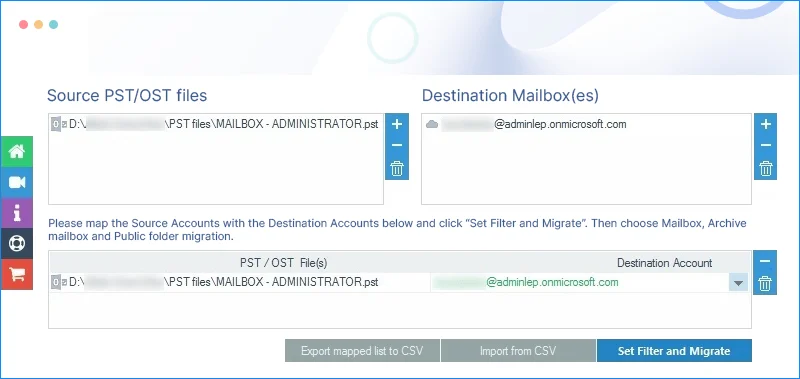 - Step 4: Choose Single/Archive mailbox and Map the Source to the Destination. Select Set Filter and Migrate.