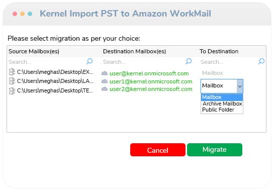 Perform the import process in just 3 simple steps using the Kernel Import PST to Amazon WorkMail: