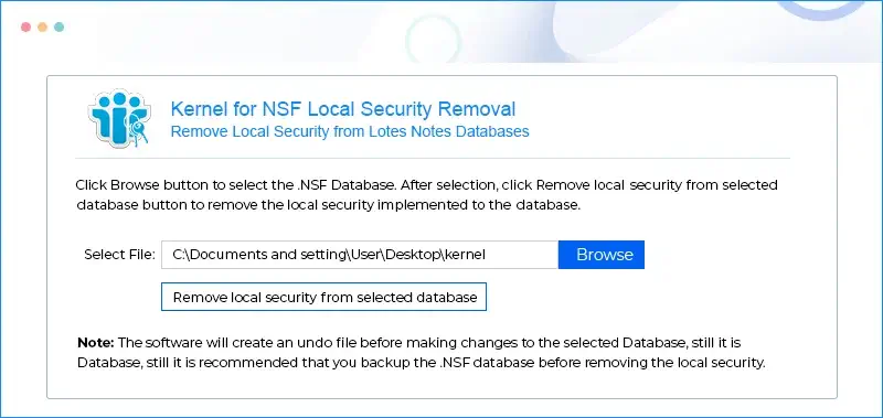 Facilitate swift local security removal with Kernel for NSF Local Security Removal. Select the NSF file and eliminate restrictions with a single click. This utility simplifies the process, requiring only a few keystrokes to remove securities from NSF databases.