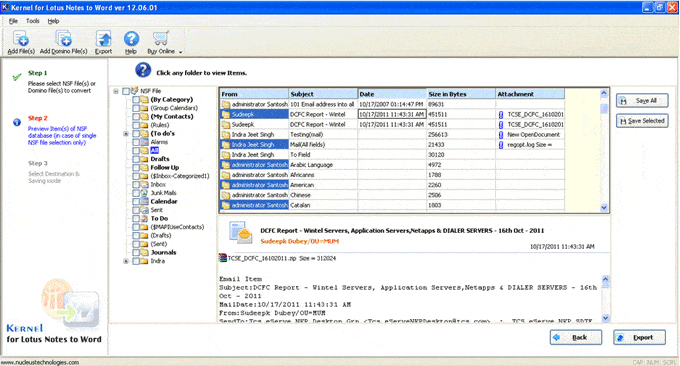 Step 2: Screen showing the preview of NSF file before converting to Word