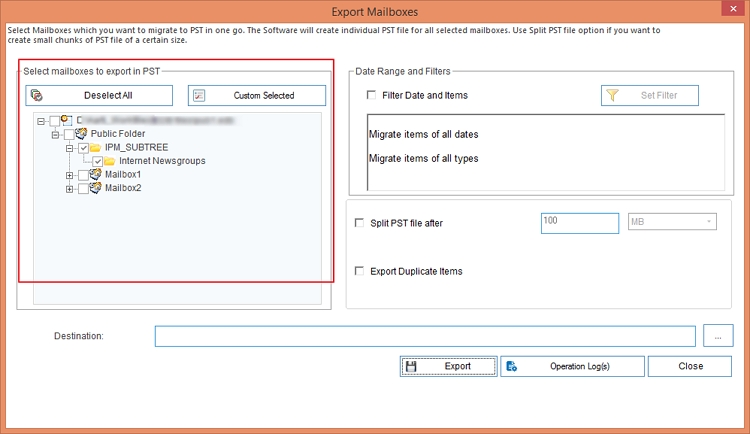 With this feature, you can select all, deselect all, or custom select the mailbox folders you want to export from EDB file to PST or other formats. Simply mark the checkbox to select a folder.