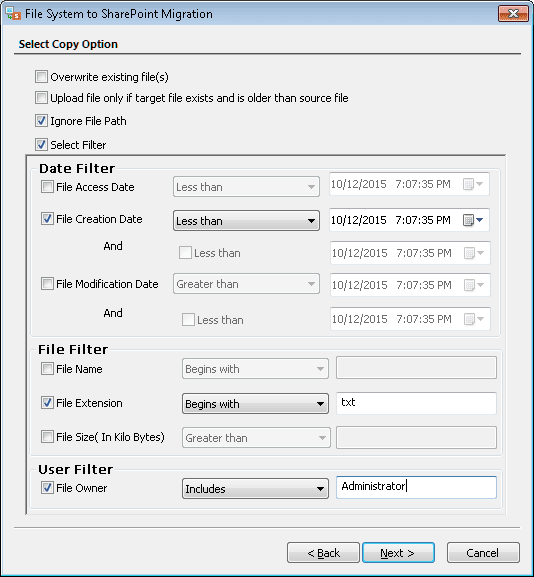 Step 13- In the next step, set the filters you want to apply to documents and click "Next.