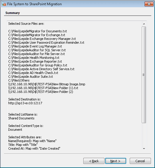 Step 10- Once the documents are selected, you’ll get back to the migration wizard that displaying all the selected list/library.
