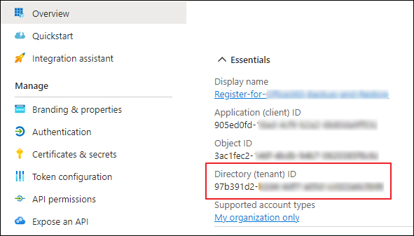 Step 4.1: Select Azure Active Directory > Overview section for the required Exchange Online organization. Locate the Tenant ID and copy it to a safe location.